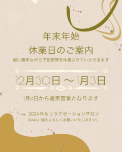 年末年始休業のご案内
